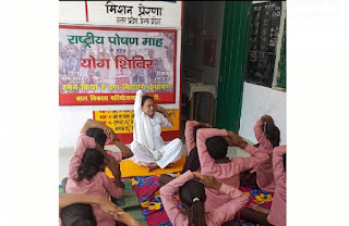 पोषण माह के तहत आंगनबाड़ी केन्द्रों पर योग शिविर आयोजित