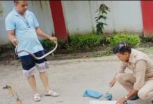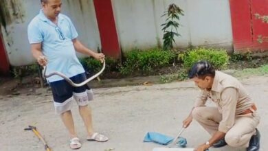SSP आवास के गेट में छिपा था बड़ा सांप सर्पमित्र ने किया रेस्क्यू
