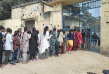परीक्षा केंद्र परिसर में प्रवेश करने के समय प्रवेश द्वार पर सख्ती के के साथ चेकिंग किया जा रहा है।
