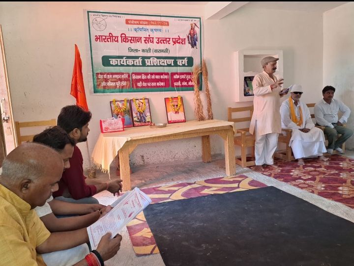 श्री प्रकाश रघुवंशी ने बताया कि आने वाले सीजन में गेहूं की बुवाई के लिए किसानों को उन्नत किस्म के बीज तैयार करने तथा जैविक खेती के बारे में जानकारी देना था ताकि वे अपने फसलों की उत्पादकता और गुणवत्ता में सुधार कर सके। भारतीय किसान संघ की स्थापना 4 मार्च 1979 को राजस्थान के कोटा शहर में हुई थी जिसका लक्ष्य भारतीय किसानों को समग्र विकास करना है। प्रशिक्षण के दौरान किसानों को गेहूं की उत्तम कि कुदरत लाइन के बारे में जानकारी दी गई जिसकी बाल की लंबाई 9 10इंच होती है जिसकी प्रति एकड़ 25 से 30 क्विंटल उत्पादन होता है। प्रशिक्षण के अंत में किसानों को निशुल्क बीज का पैकेट वितरण किया गया। प्रशिक्षण के दौरान शिवशंकर पाठक,प्रांत कार्यसमिति सदस्य उमाकांत,विकास खंड अध्यक्ष विजय शंकर, विकास खंड मंत्री राजेश,जिला मंत्री विपुल ,जिला कोषाध्यक्ष गौरव,जिला कार्यसमिति से रंजीत, कृपाशंकर, नागेंद्र,श्यामबली,महेन्द्र आदि समिति के लोग उपस्थित रहे।