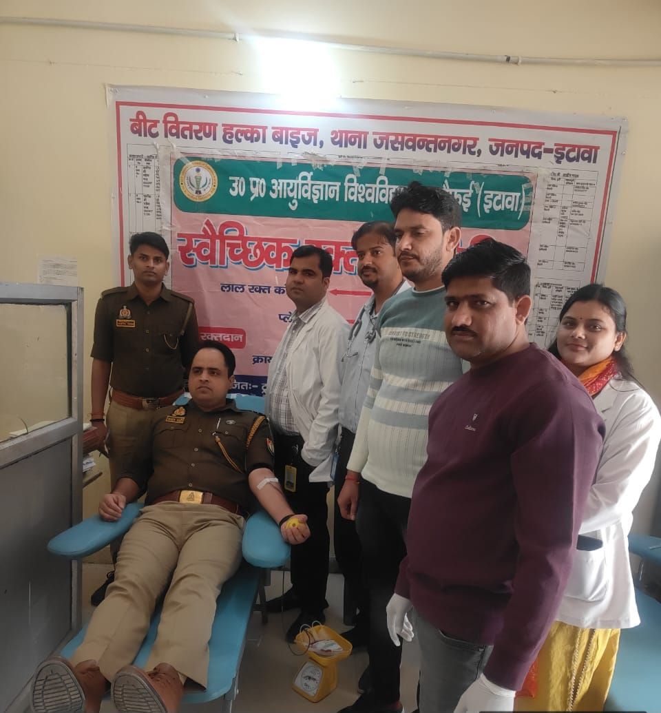 जसवन्तनगर /इटावा।उत्तर प्रदेश आयुर्विज्ञान विश्वविद्यालय के ट्रांसफ्यूज़न मेडिसिन विभाग द्वारा जसवंतनगर थाना परिसर में आज एक रक्तदान शिविर का सफलतापूर्वक आयोजन किया गया। यह शिविर पुलिस थानों में साप्ताहिक रक्तदान अभियान का हिस्सा था।