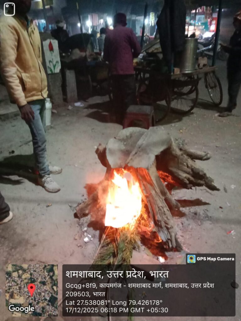 कड़ाके की ठंड में शमसाबाद नगर पंचायत का राहत अभियान, सौ से अधिक स्थानों पर जल रहे अलाव