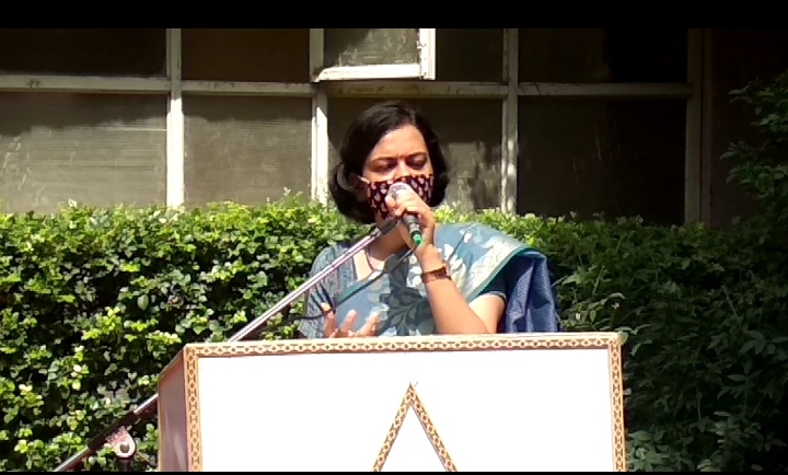 साथ ही मेम ने कहा हर वो इंसान देश भगत है जो किसी ने किसी रूप मे सेवा कर रहे है चाहे वो हमारा घर हो ऑफिस हो या समाज हो मेम ने अंत मे सभी को बधाई देते हुए स्वतंत्रता दिवस की शुभकामनायें दी।