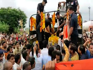 हजारों की भीड़ शहीद की एक झलक पाने के लिए बेताब थी। जवानों ने पार्थिव शरीर को सम्मानपूर्वक वाहन से निकालकर कंधे पर उठाया और लोकेंद्र के आंगन तक गए। देश सेवा में जान गंवाने वाले बेटे को देखने के लिए ले सुबह से लोग इंतजार कर रहे थे। जैसे ही तिरंगे से लिपटे लोकेंद्र को देखा, वहां मौजूद सभी की आंखें नम हो गईं।