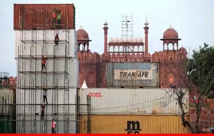 15 अगस्त से पहले लाल किले की बड़ी सुरक्षा, कंटेनरो की खड़ी की गई दीवार